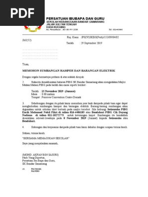 Dalam pembuatan surat permohonan, ada beberapa poin yang perlu diperhatikan, seperti identitas serta tujuan. Tentunya akan butuh biaya besar dan panitia bisa meminta bantuan ke berbagai pihak. Demikian surat permohonan ini kami buat, terimakasih atas sumbangan yang diberikan. Kumpulan contoh surat mohon sumbangan barang dan contoh surat mohon sumbangan barang yang bisa anda download secara gratis disini. Persatuan kelab guru dan kakitangan smk telok gadong, klang ruj. Oleh saputra mei 23, 2022 posting komentar.